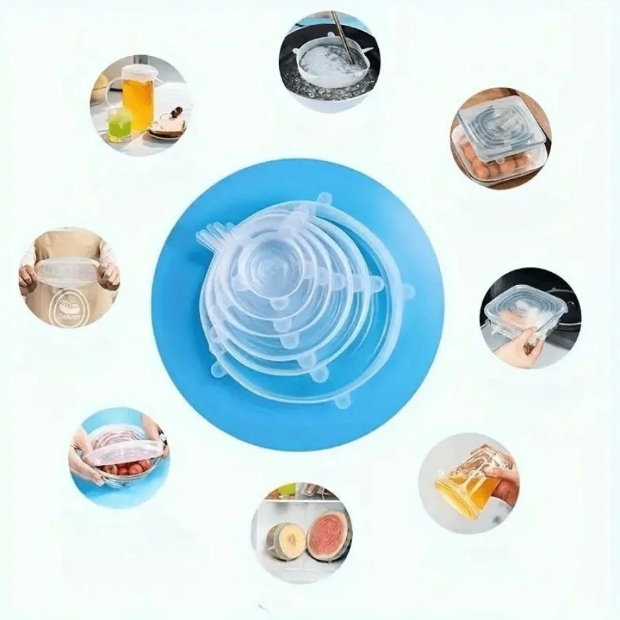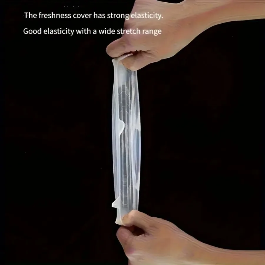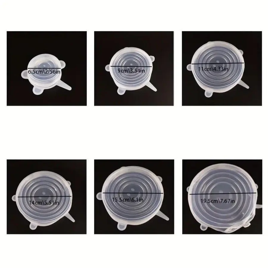 This white silicone fresh-keeping cover comes in 6 different sizes and is made of stretchable silicone material. It is suitable for various containers such as bowls, plates, and cups, and can be tightly covered to achieve sealing and preservation effects. It can withstand high and low temperatures, is not easily deformed or cracked, and is an ideal practical product for preserving kitchen ingredients and storing leftovers.